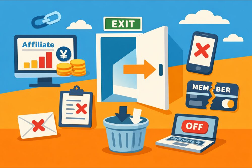 - A8ネットの退退会自体は難しくないが、報酬やリンクの整理をせずに進めると損をする可能性がある