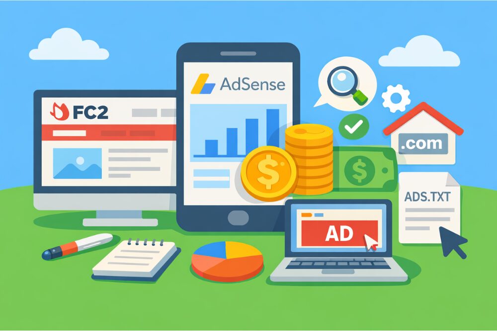 この記事では、そんな不安をなるべく減らせるように、FC2ブログでアドセンスを使うときの考え方から、審査準備、登録手順、広告の貼り方、よくあるトラブルの対処までを一つずつ整理していきます。