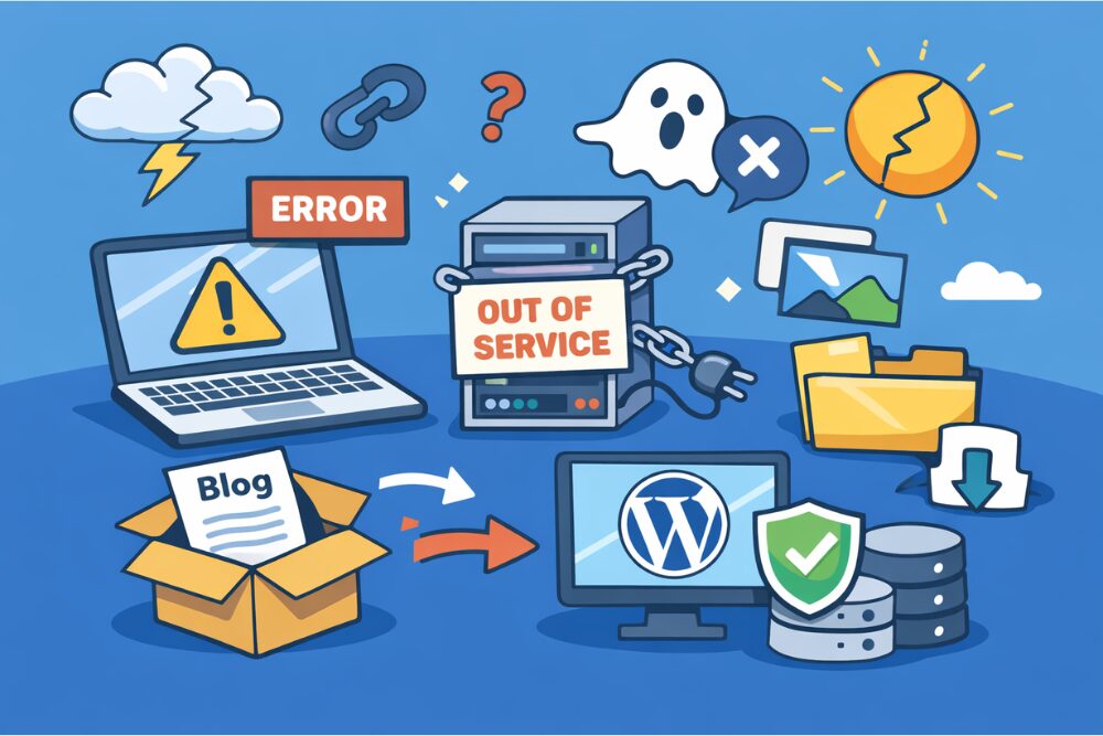特に最後の「一時的な障害」はやっかいで、何も知らずに自分のブログを開こうとしてエラーが出ると、どうしても「終わった」と感じてしまいます。しかし、しばらくして何事もなかったように復旧するケースも多くあります。