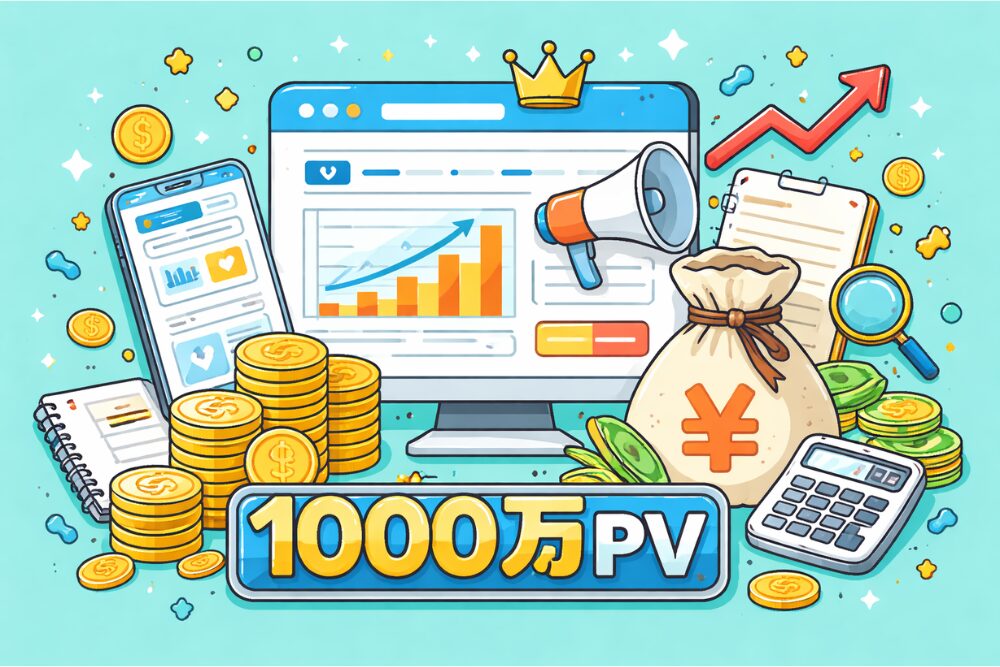 私も昔、自分のブログが数万PVから数十万PVに伸びたとき、同じPVでも単価を工夫すると収入がガラッと変わる感覚を味わいました。1000万PVクラスになると、その「単価の調整」が桁違いのインパクトになる、そんなイメージです。