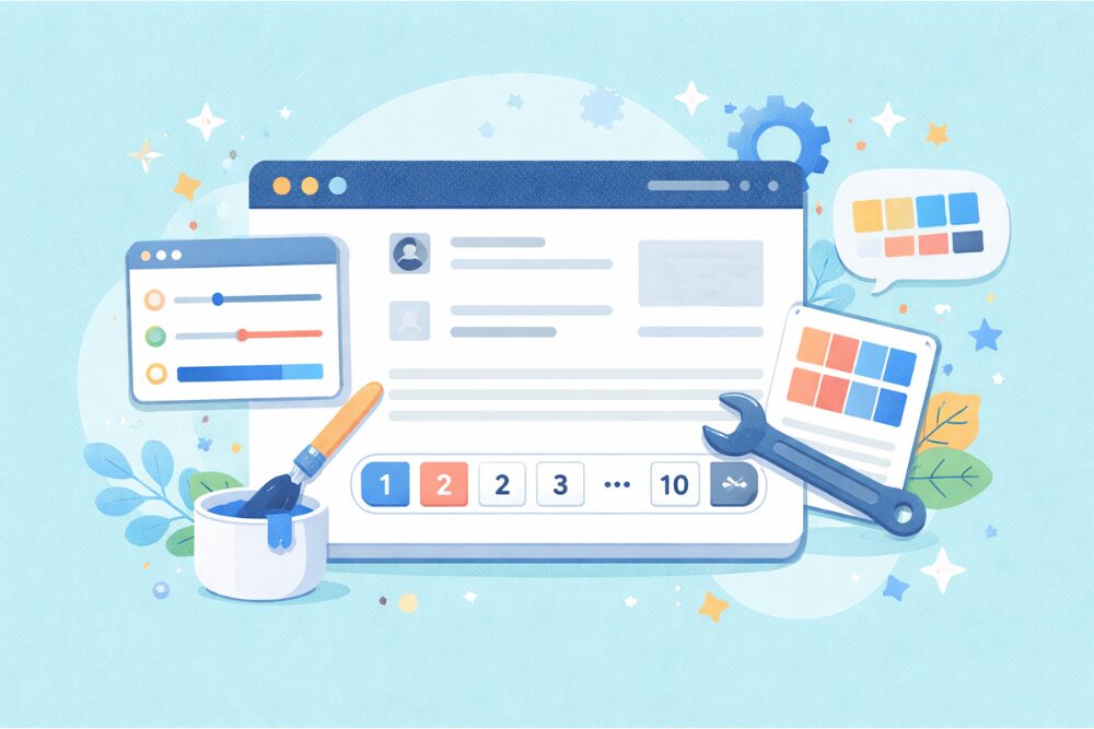 という2ステップから始めてみるのがおすすめです。「意外と簡単にページャーをカスタマイズできた」と感じられたら、少しずつ他の部分も調整してみてください。ページネーションが整うと、サイト全体がぎゅっと引き締まって見えるので、デザイン面のモチベーションもぐっと上がります。
