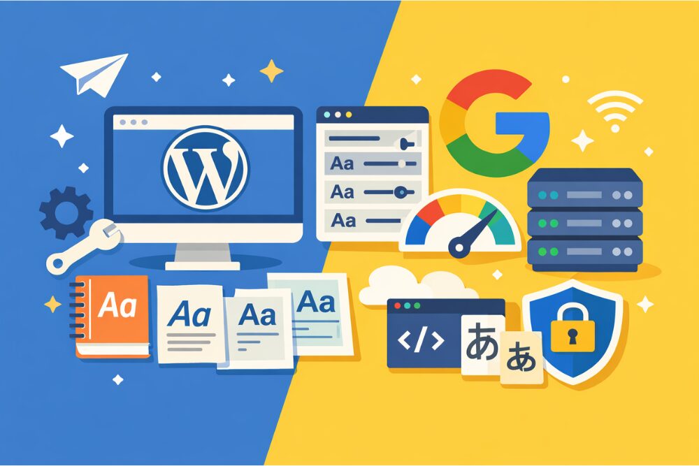 - 表示速度やプライバシーを意識するなら、ローカルホスティング系プラグインやFont Libraryを活用する