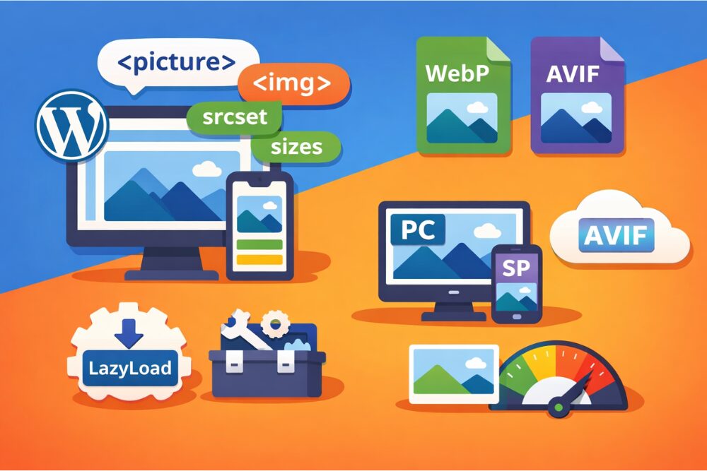 この記事では、そうしたモヤモヤを解消するために、WordPressのpictureタグの考え方から、プラグインでの手軽な導入方法、テーマ編集でのしっかりした実装パターンまで、順番に整理していきます。