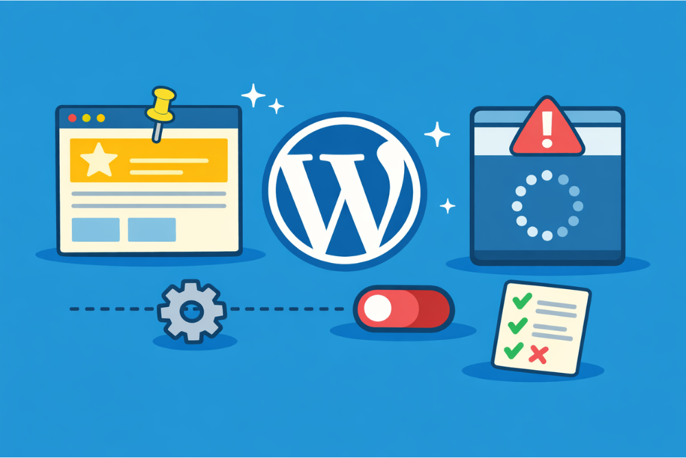 この記事では、WordPressの先頭固定表示の設定方法から、「なぜか先頭固定されない」ときの原因と直し方まで、一通りまとめておきます。