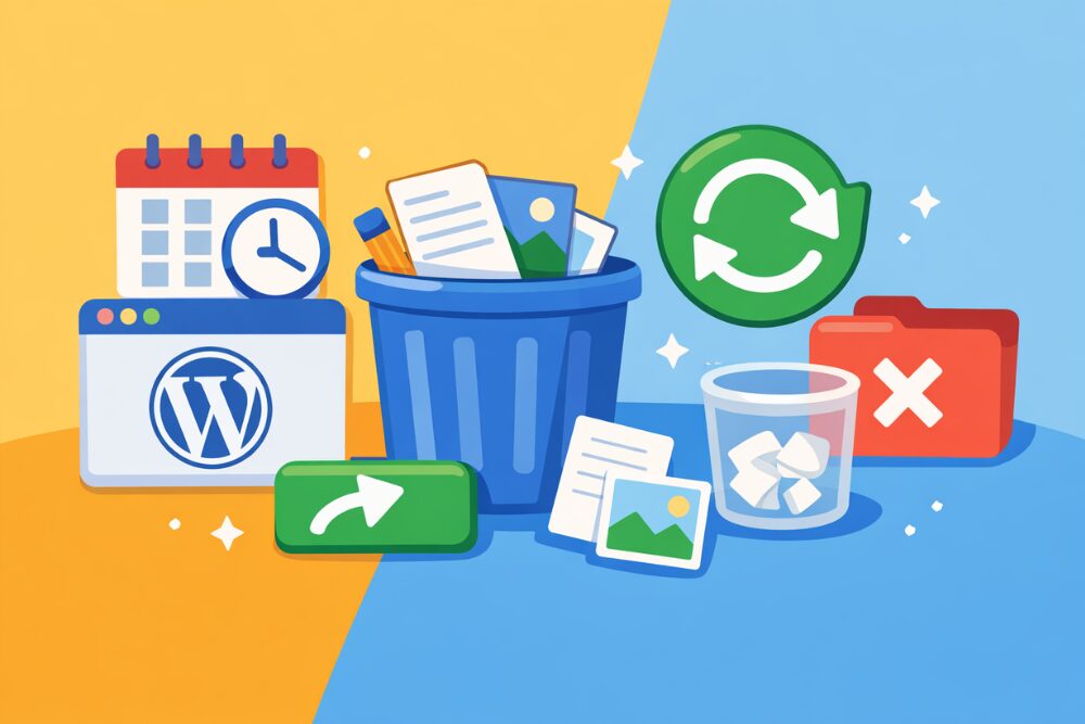 この記事では、WordPressのゴミ箱がある場所、保存期間の考え方、復元の手順までを、初めての方にもわかりやすく整理してお伝えします。