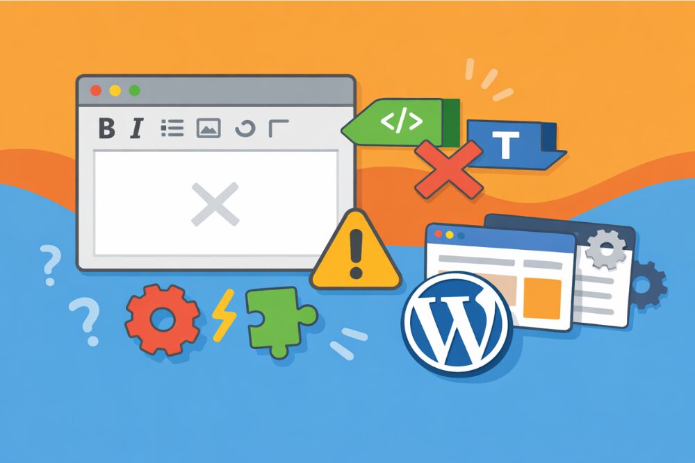 ビジュアルエディタに切り替えできないからといって、すぐに故障とは限りません。Classic Editorの設定で、利用者の切り替えが制限されている場合があります。まずは設定を確認し、それでも直らなければプラグイン競合を疑うとよいです。